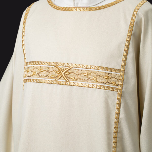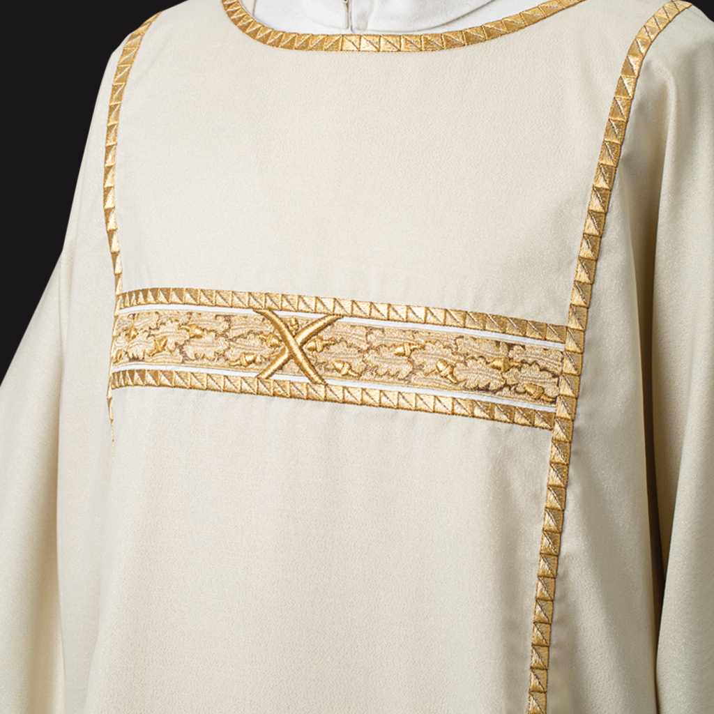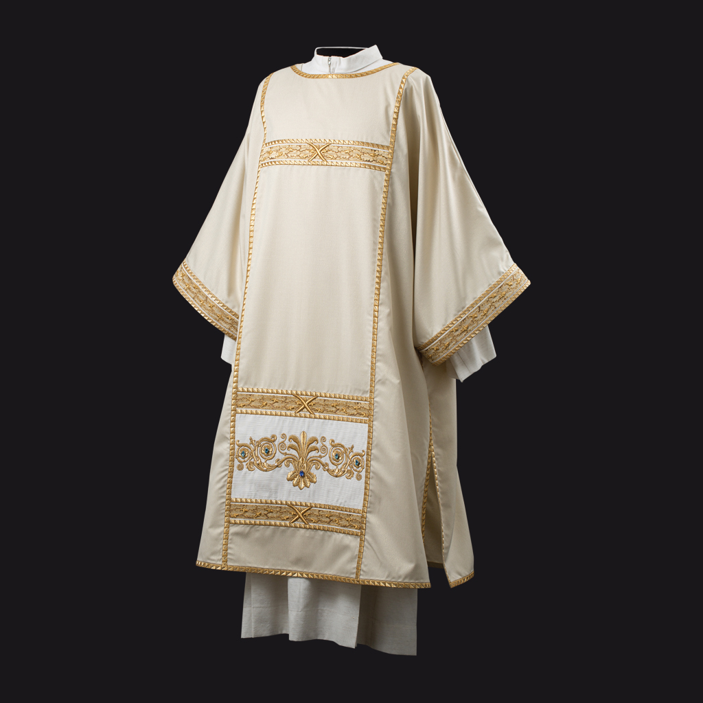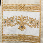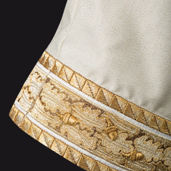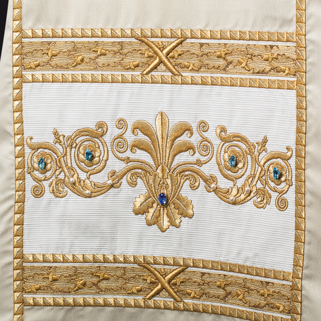 Taglio postconciliare, clavi e aureofregio interamente ricamati.